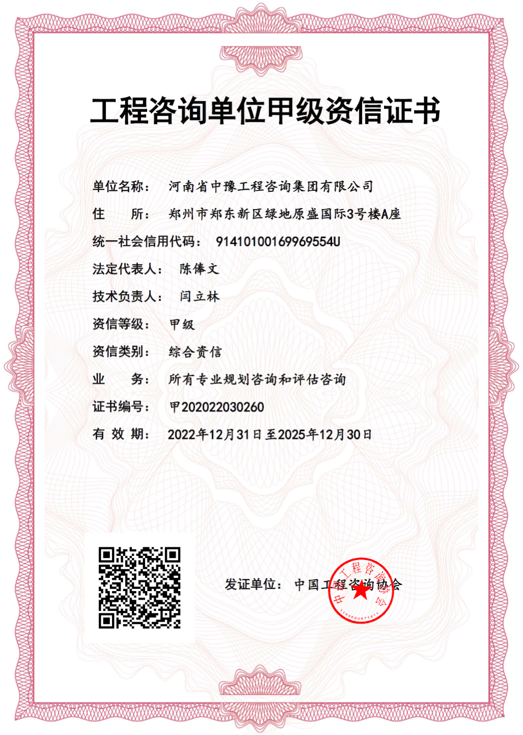 On January 2, 2023,China National Association of Engineering Consultantsannounced the list of units that meet the comprehensive Grade A, professional Grade A and special credit evaluation standards.Henan Zhongyu Engineering Consulting Group Co., Ltd., a subsidiary of HNCA, successfully obtained the comprehensive credit Grade A certificate ofCNAEC, and added the petrochemical, chemical and pharmaceutical Grade A professional credit.