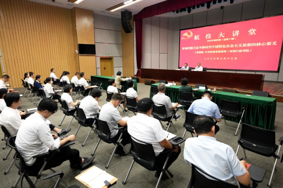 為深入推進(jìn)學(xué)習(xí)貫徹習(xí)近平新時(shí)代中國特色社會(huì)主義思想主題教育,7月12日下午,河南航投集團(tuán)黨委召開理論學(xué)習(xí)中心組集體學(xué)習(xí)(擴(kuò)大)報(bào)告會(huì),邀請中共河南省委黨校(河南行政學(xué)院)教授丁素作報(bào)告。