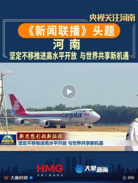 8月25日,中央廣播電視總臺《新聞聯(lián)播》頭題播發(fā)“堅定不移推進(jìn)高水平開放 與世界共享新機(jī)遇”主題報道,關(guān)注“空中絲綢之路”建設(shè)情況。